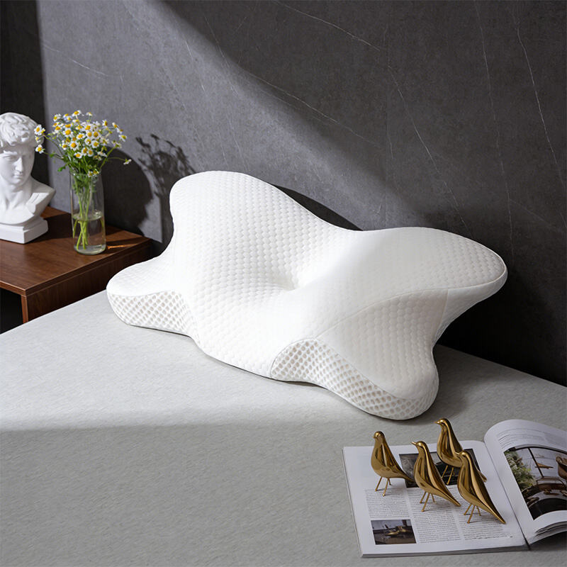 This ergonomic butterfly memory foam pillow is designed for superior neck support and pressure relief. Made with high-density slow-rebound foam and breathable knitted fabric, it ensures comfort and durability.